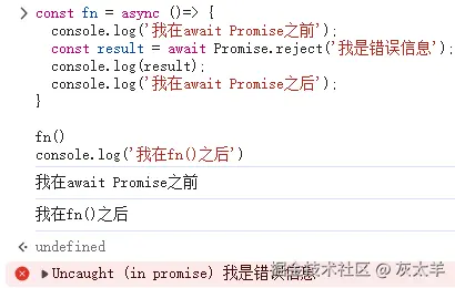 const result = await Promise.reject('我是错误信息');
