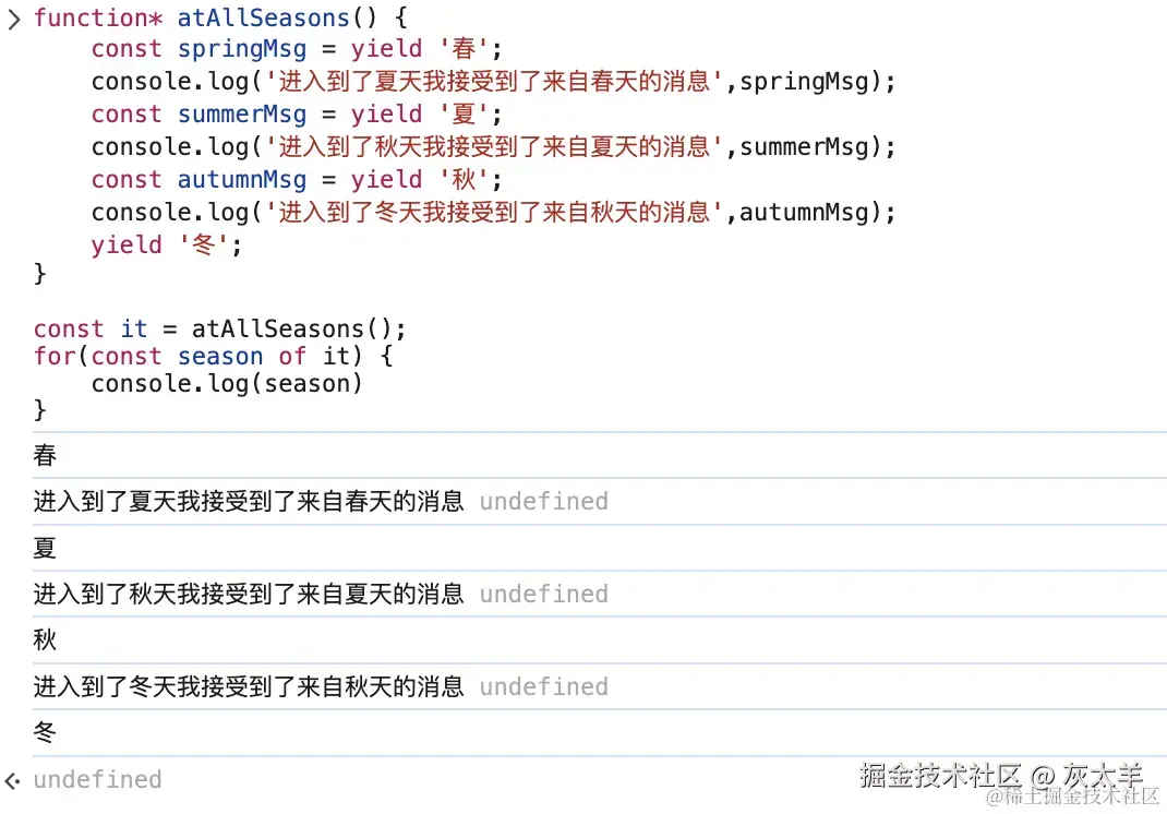 yield没有返回值:undefined