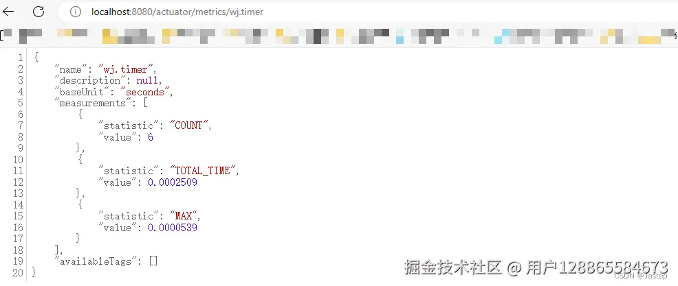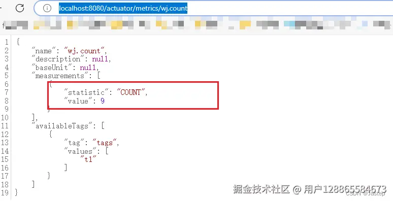 查看指标的具体数据,在http://localhost:8080/actuator/metrics/ 后面跟上对应的指标即可。