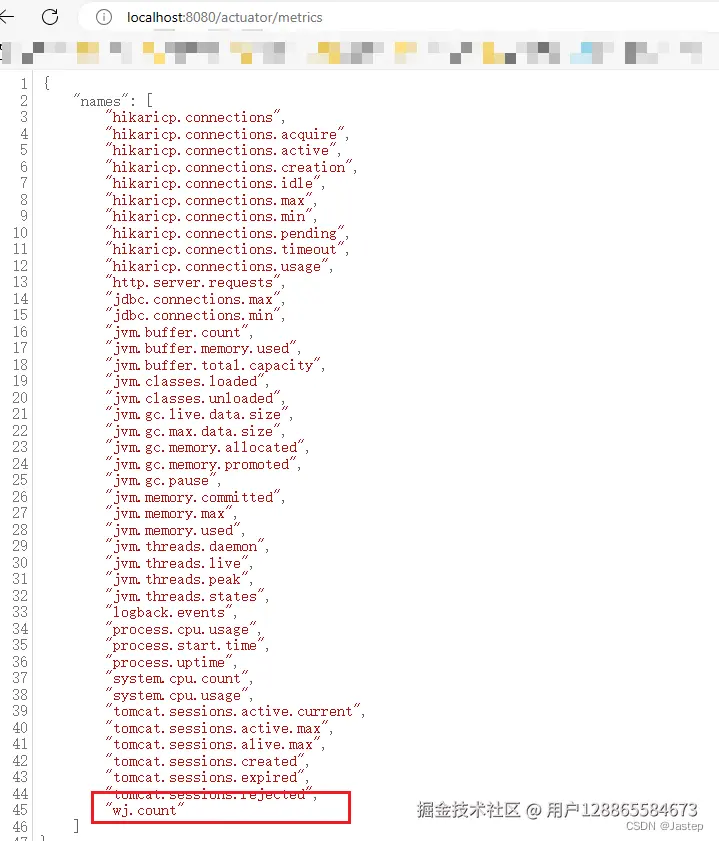 查看metrics端点,发现自定义的counter指标也出现了。