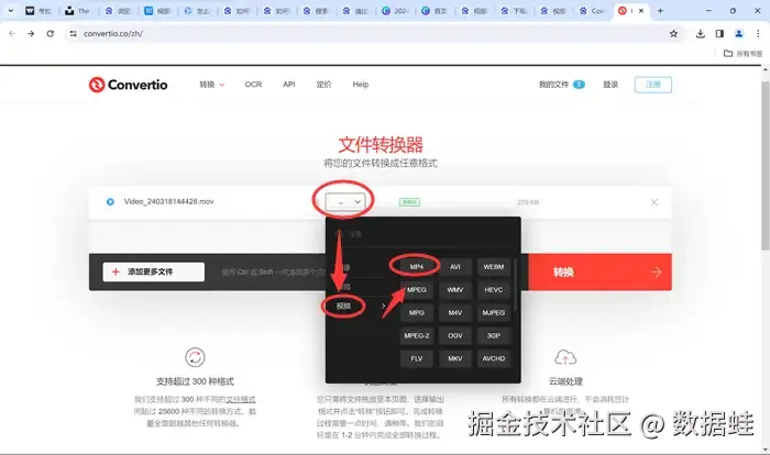 步骤一:打开浏览器,搜索 【Convertio】 。点击屏幕上的 【选择文件】 按钮,上传您需要转换的视频文件。