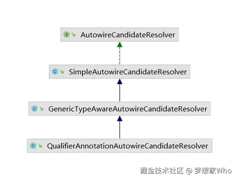 这三个实现类是继承的关系,在执行isAutowireCandidate()方法时,会先调用父类的方法判断是否满足条件、如果不满足,则直接返回false,即不满足,只有条件均满足的情况下才是候选者。