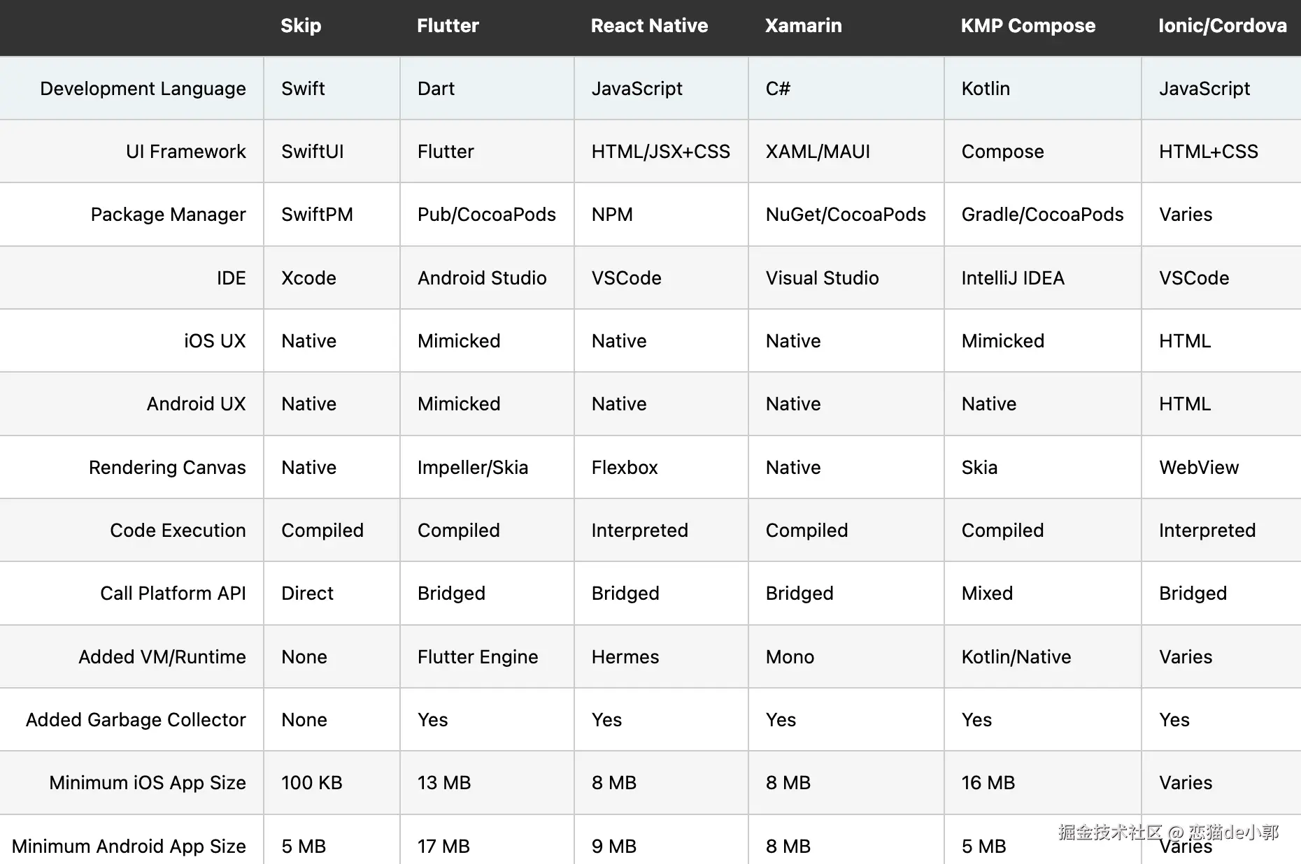 至于为什么说是原生级?稍微了解之后,我发现它的理念和思路有点意思,或者说类似的路子国内也有,例如曾经写过的 《uni-app-x 了解过吗?》 ,从思路上看它们都是走的「转译」的路线,当然这个路线成本不低,比如在 uni-app-x 文章的评论区,就有大哥有比较深的感悟: