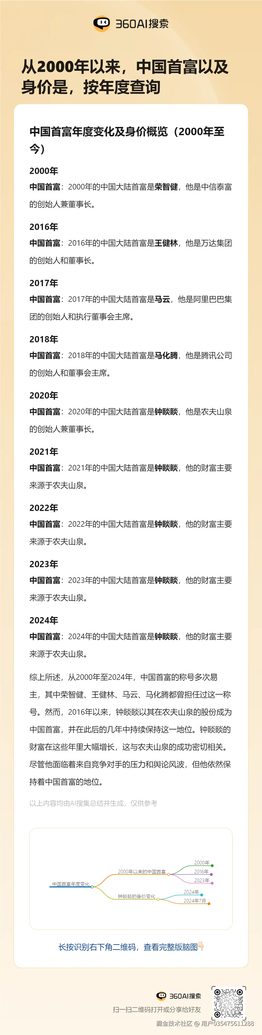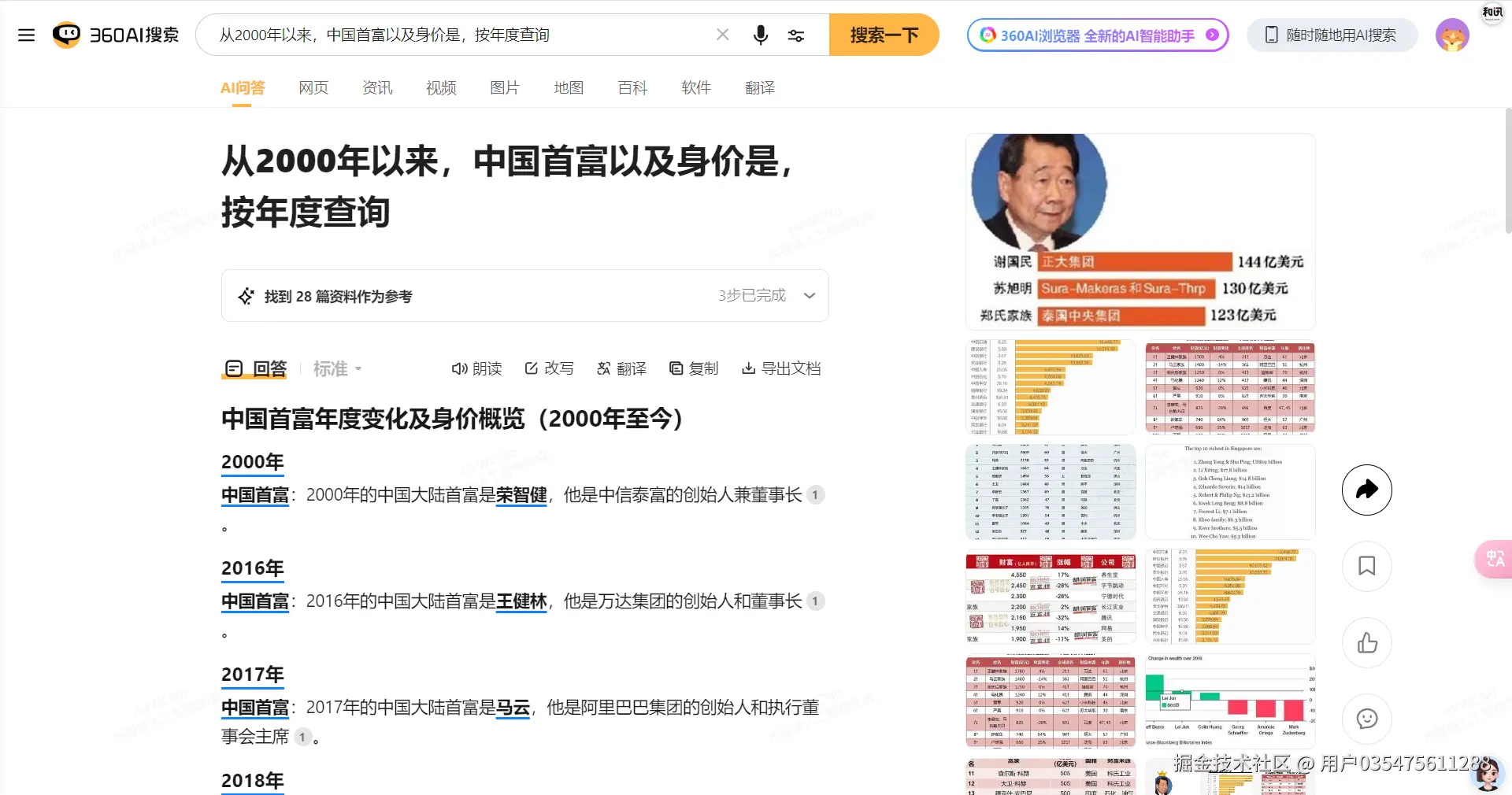 以“从2000年以来,中国首富以及身价是,按年度查询”为例: