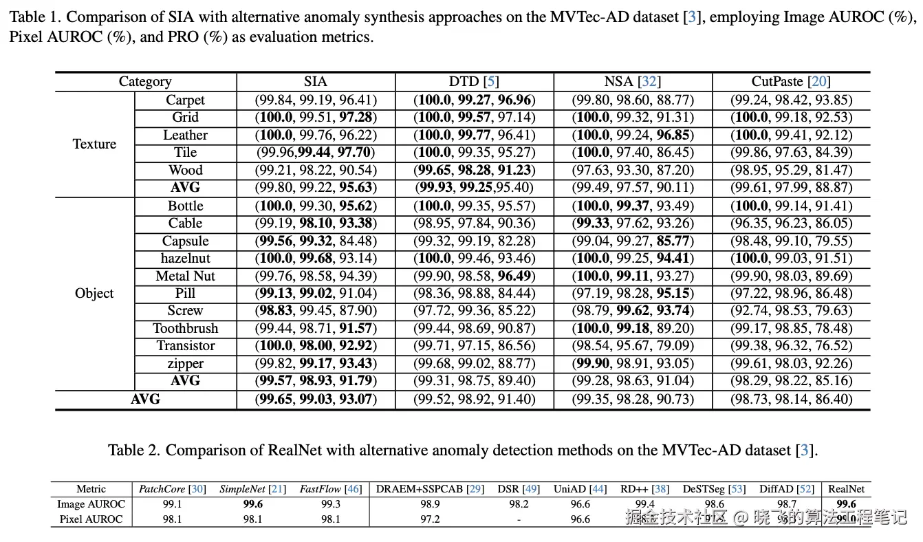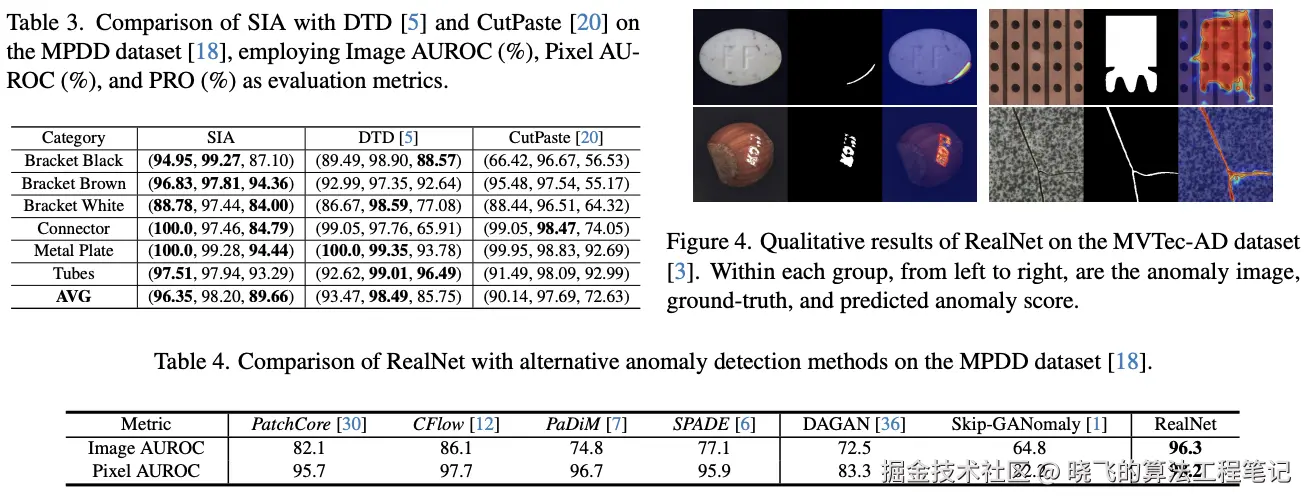 MVTec-AD、MPDD、BTAD和VisA)上对RealNet进行了评估,使用相同的网络架构和超参数集合在不同的数据集上超越了现有的最先进方法。 - 提供了合成工业异常数据集(