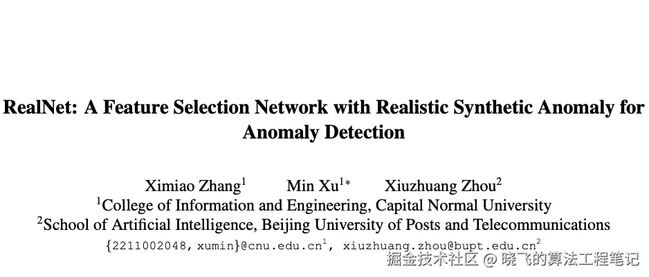 论文: RealNet: A Feature Selection Network with Realistic Synthetic Anomaly for Anomaly Detection