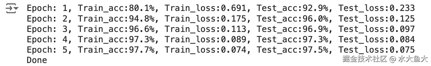 template = ('Epoch:{:2d}, Train_acc:{:.1f}%, Train_loss:{:.3f}, Test_acc:{:.1f}%, Test_loss:{:.3f}')