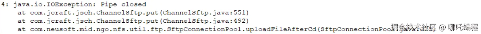 channelSftp.cd(directory);提示java.io.IOException: Pipe closed) - 经过问题的定位分析,结论如下:多线程情况下,其它线程将ftp连接关闭了,导致cd时,channelSftp为无效链接。