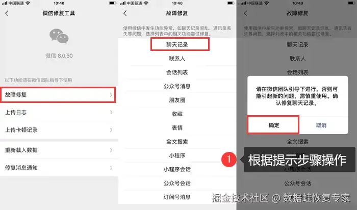 “聊天内容清空了能恢复吗?”首先我们可以使用微信内置的修复工具进行尝试。