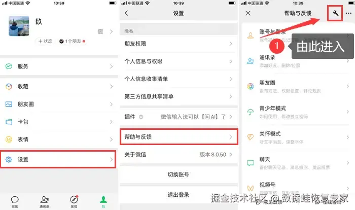 适用场景: 该方法适用于因微信软件自身问题导致的聊天记录丢失,如更新后聊天记录异常、闪退后数据未保存等情况,所以恢复成功率比较低。其恢复方法如下: