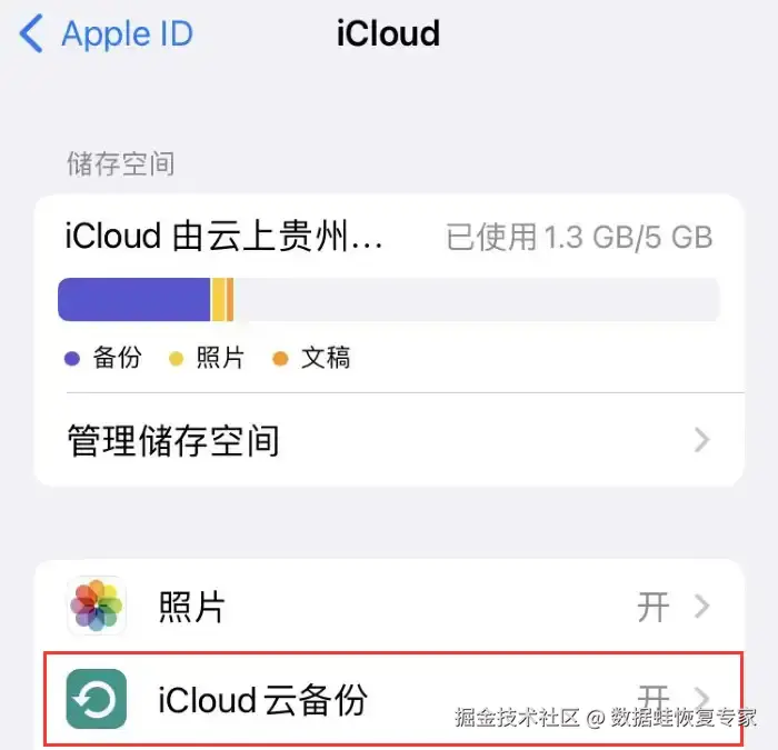 步骤1:确保苹果手机已开启了iCloud云备份服务。