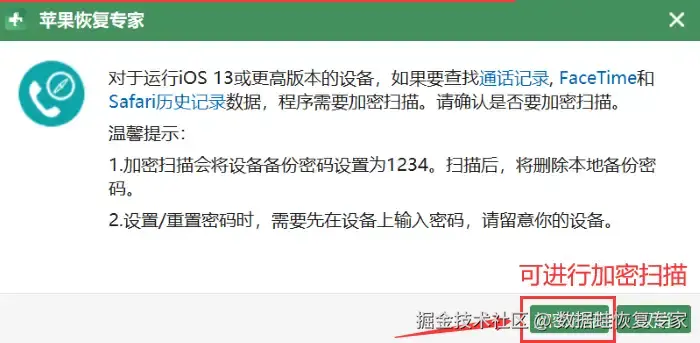 步骤2:在扫描过程中,会出现私密深层扫描的提示,我们可以放心输入密码后进行 【私密扫描】 ,软件会严格保护您的隐私。