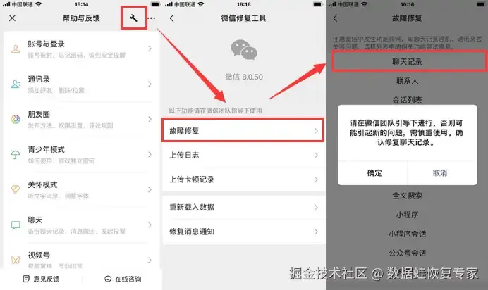注意:此方法主要用于因微信软件自身问题导致的聊天记录丢失,对于人为删除的记录恢复效果非常有限。