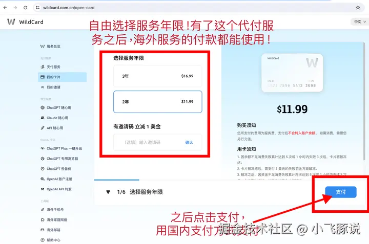 那可以考虑代付服务。我们在国内直接用支付宝或微信支付,他们帮你搞定国际支付的渠道。以wildcard为例: