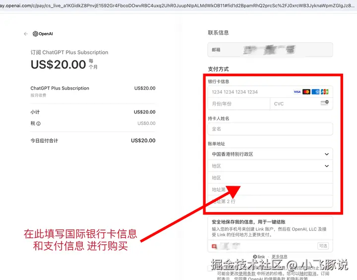 再次登入ChatGPT升级付款页面时,你只需要: