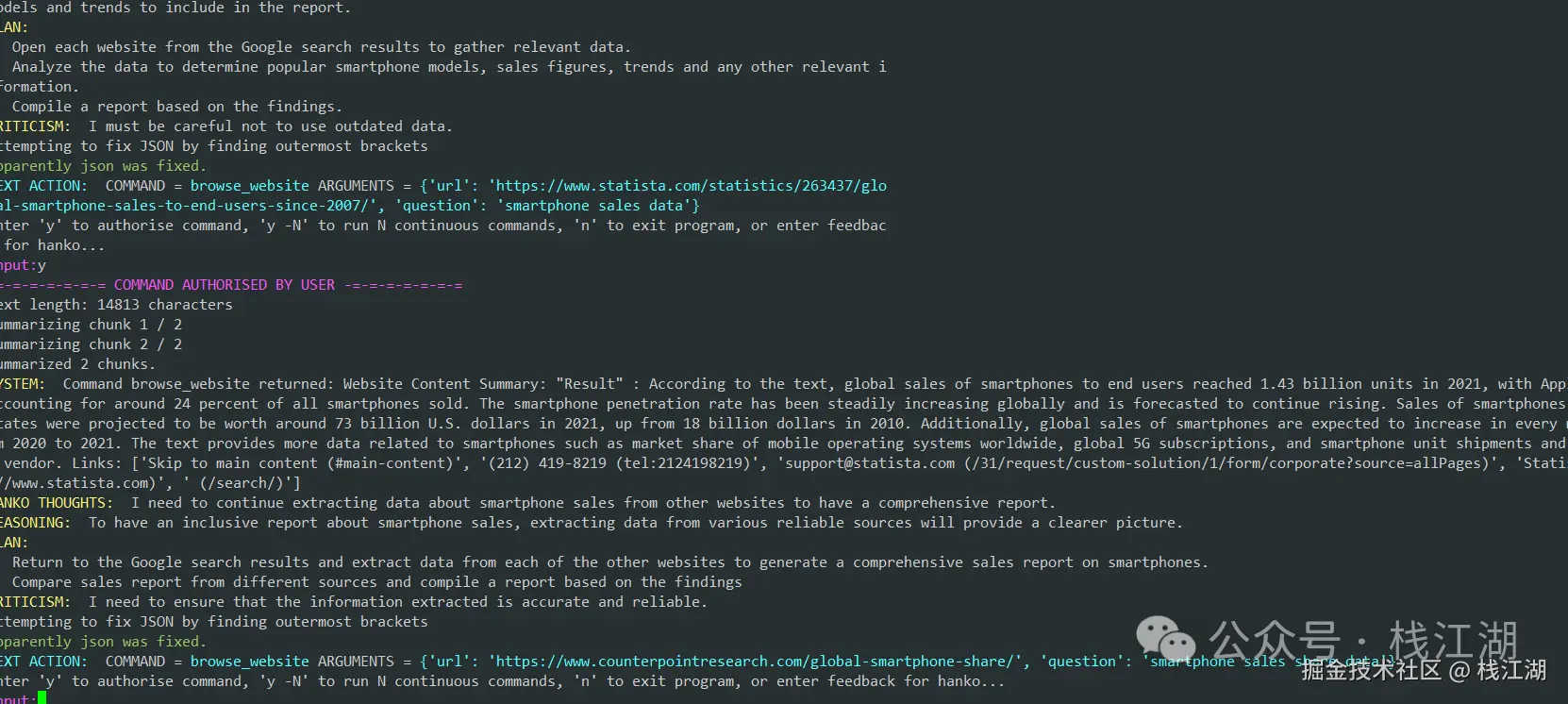 与ChatGPT相比多了自动做出推理、计划和执行能力。搭建好后你可以给定一个角色及目标,给定好后,它会定一个计划出来,然后调用Google搜索引擎查询,并统计分析出结果。