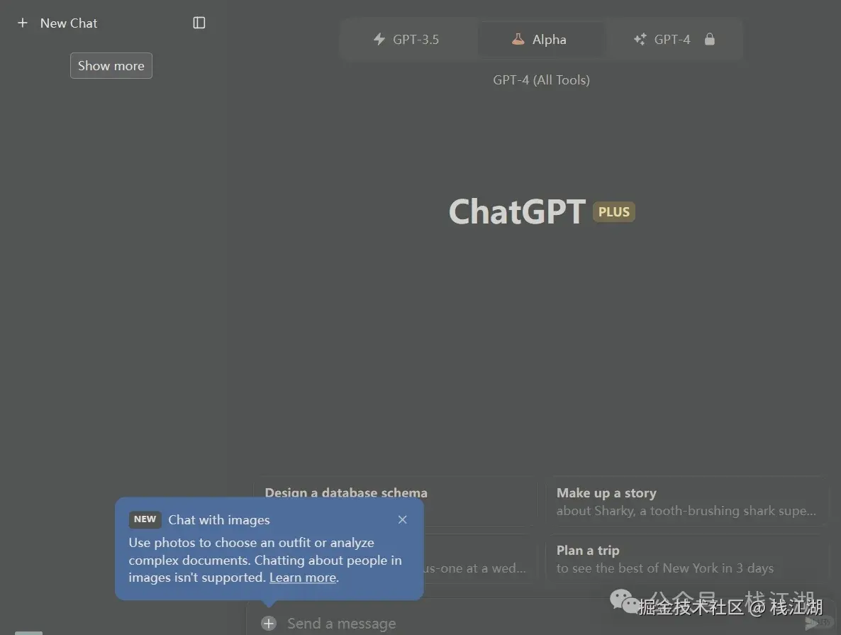 Dell.E3,就像是ChatGPT4的创意魔杖,为你的聊天体验增添了一抹艺术的光彩。聊天时,你甚至可以要求ChatGPT4绘制你描述的场景、人物或者情感,让你的对话变得更加生动有趣,仿佛置身于一个充满画面的奇妙空间。