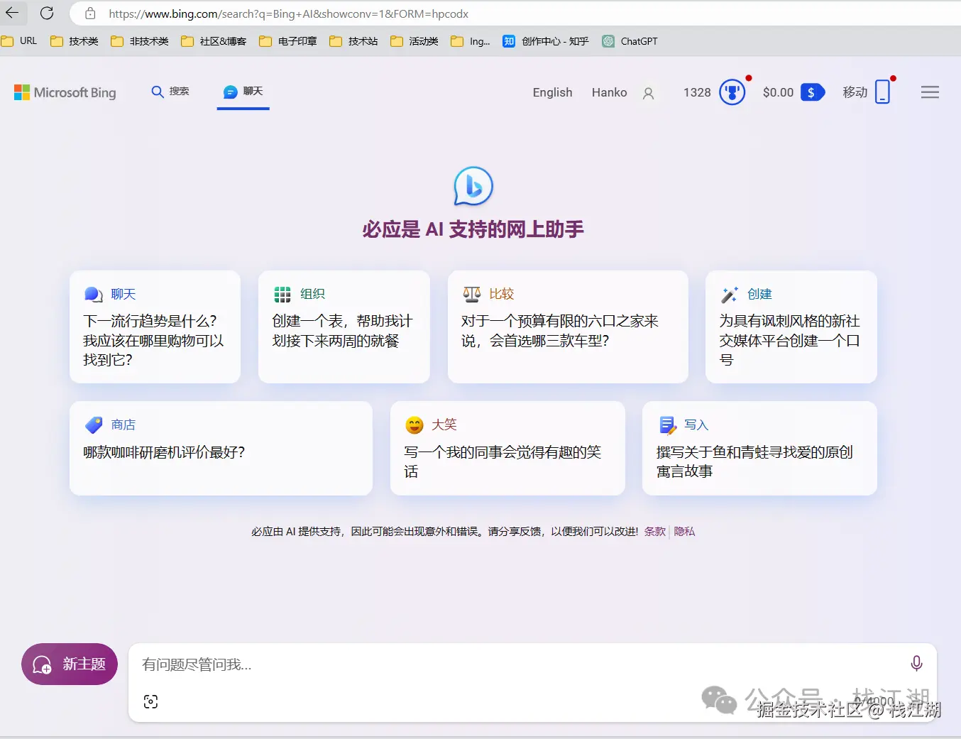 New Bing是一款由微软推出的新一代搜索引擎,它不仅可以帮你搜索网页,图片,视频,新闻等信息,还可以帮你生成文本,翻译文本,总结文本,以及AI绘图。它的搜索结果是基于AI的语义理解和知识图谱的,所以更加准确和相关。它还有一个强大的AI助手,可以根据你的输入,为你提供各种服务和建议。你可以在它的网站上输入任何你想要的内容,它会给你最佳的答案和解决方案。也可以下载它的手机应用,让它成为你手机的好伙伴。