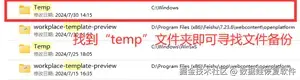 第2步: 搜索完成,在搜索结果找到“temp”文件夹,寻找文件备份即可。