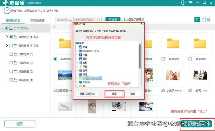 步骤4: 勾选目标文件后,点击“导出” ,为文件选择一个新存储路径。