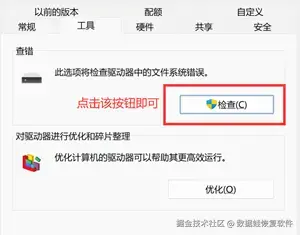 U盘数据找回方法二:利用系统磁盘查错恢复U盘