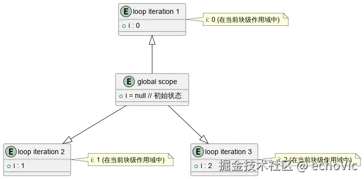 使用 let 定义的 i 在每次循环迭代时形成了新的作用域,因此在 setTimeout 中能够正确输出迭代变量的值。