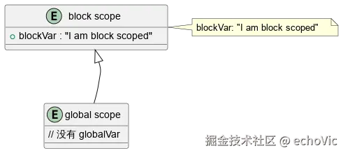 blockVar 只在块级作用域内部是可访问的,而在全局作用域中访问会报错。