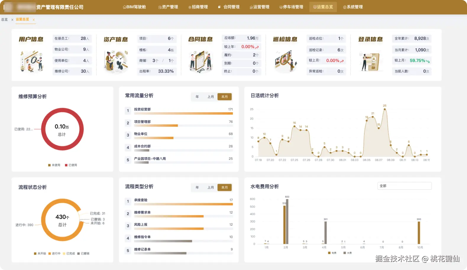 最离谱的是,期项目从BIM驾驶舱到经营分析大屏,以及一套含项目/合同/工单等10多个模块的综合运营管理平台,一个多月就被他们搞定了。作为一个自媒体技术博主的我,敏锐的嗅到素材的味道,直接就去联系我的朋友把项目和平台薅来研究一下,分享给粉丝们用无代码搭建“商业园区综合管理”的一手资料。