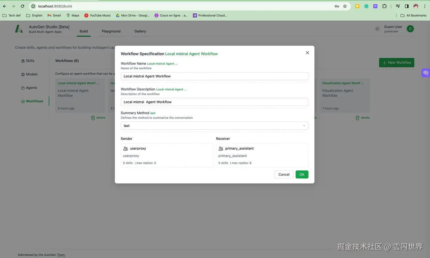- AutoGen Studio 中建立了一个名为“mistral local model”的模型,用于与 Mistral AI 进行交互。
