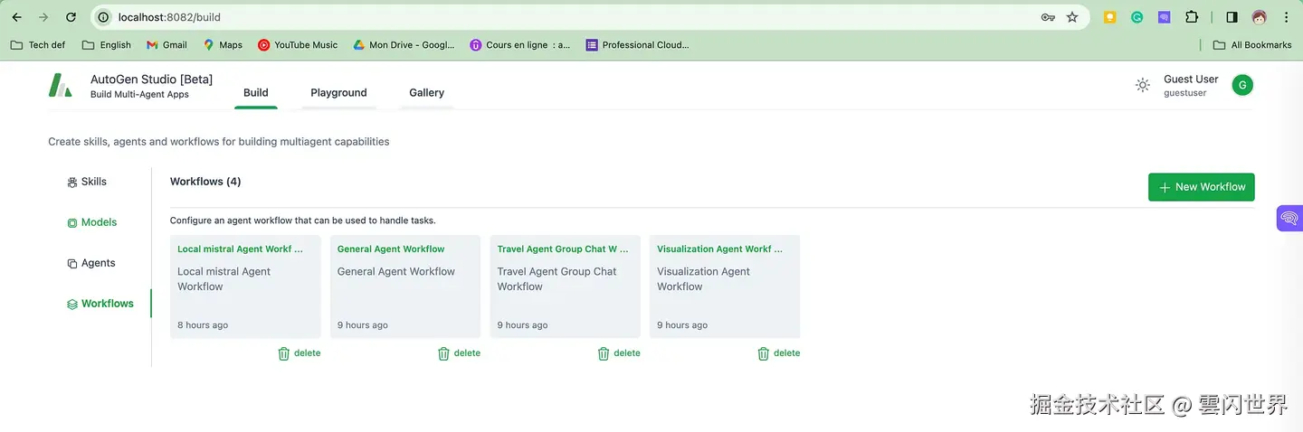 浏览 AutoGen Studio 的界面: Autogen Studio 安装 AutoGen Studio 的源代码在这里,可以通过 pip 安装。 pip 安装 autogenstudio 运行 Autogen Studio 安装后,在终端中输入以下内容来运行 Web UI: autogenstudio 用户界面- 港口 8082