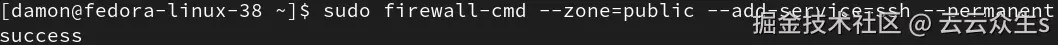 $ sudo firewall-cmd --zone=public --add-service=ssh --permanent