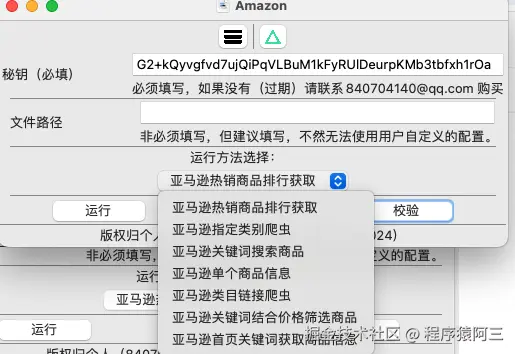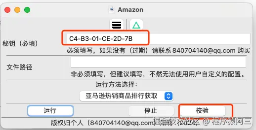 再次点击校验, 出现校验成功,说明秘钥是正确,就可以点击运行