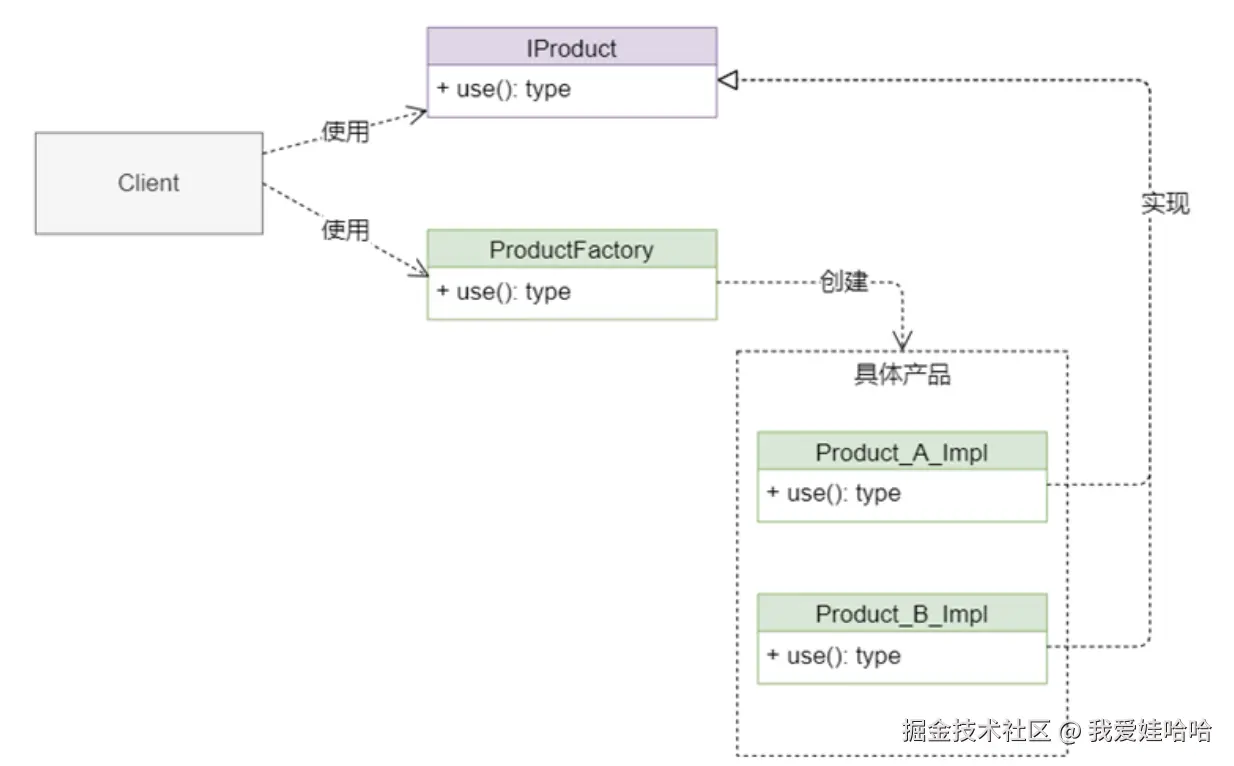 隐藏了具体使用哪种产品来创建对象。 由于工厂方法模式对外使用统一的抽象接口,这样就向用户隐藏了具体正在使用的产品实例,让用户只需要关心抽象接口即可,无须关心创建细节,甚至都不用知道具体产品类的真实类名。