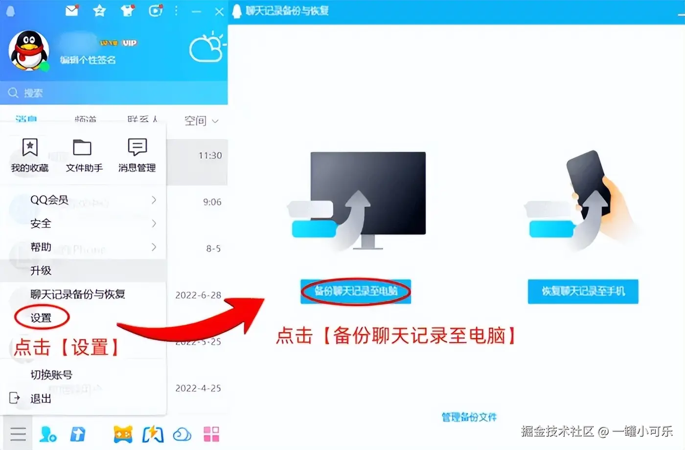 QQ应用设置了聊天记录迁移与备份的功能,通过这个功能,用户可以将聊天记录备份到电脑或者是手机中,解决QQ聊天记录数据恢复的问题。具体的执行步骤如下所示。