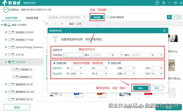 第三步: 建议使用“筛选器”去限定目标文件的范围,能够更快找到需要恢复的文件。