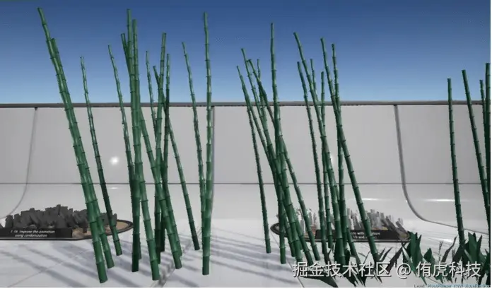 下图分别是无曲率旋转和有曲率旋转的区别,可以看出曲率的加入对于效果的影响巨大,没有曲率的竹子看上去非常僵硬。