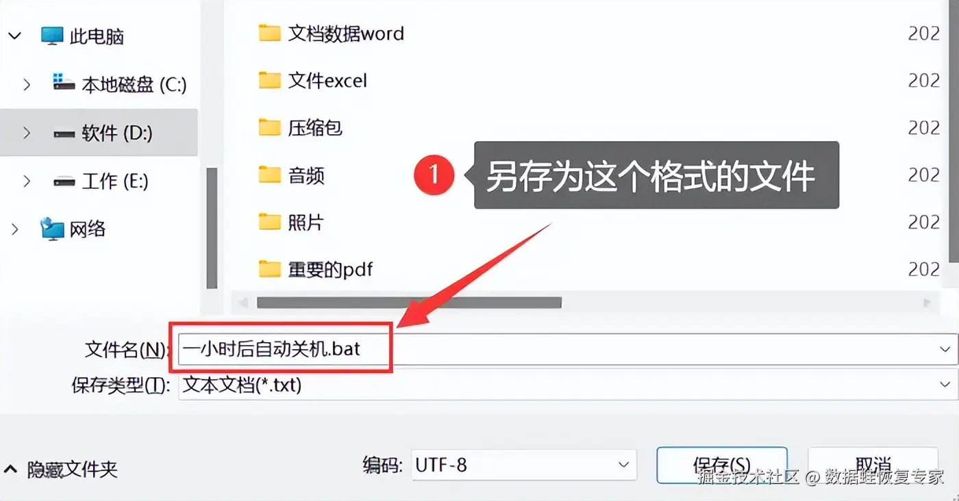 第三步:将文本文档另存为如图所示的文件。