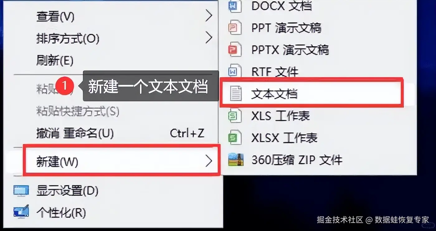 第一步:在桌面单击鼠标右键,选择 【新建】-【文本文档】 ,然后打开。