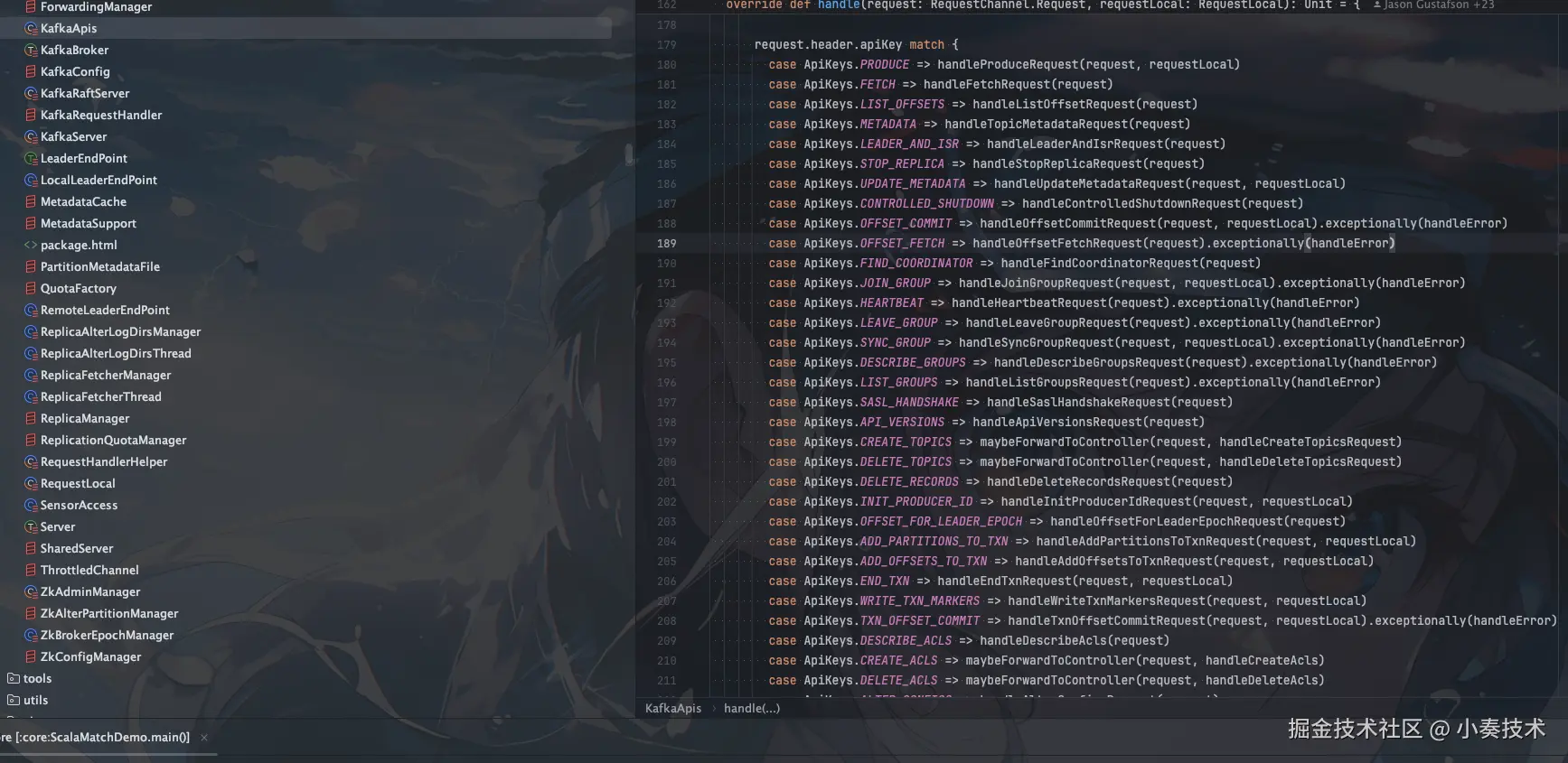 kafka中大量使用了scala语法,模式匹配很场景,kafka最核心最终要的源码类KafkaApis对不同的网络请求处理就使用了模式匹配去处理