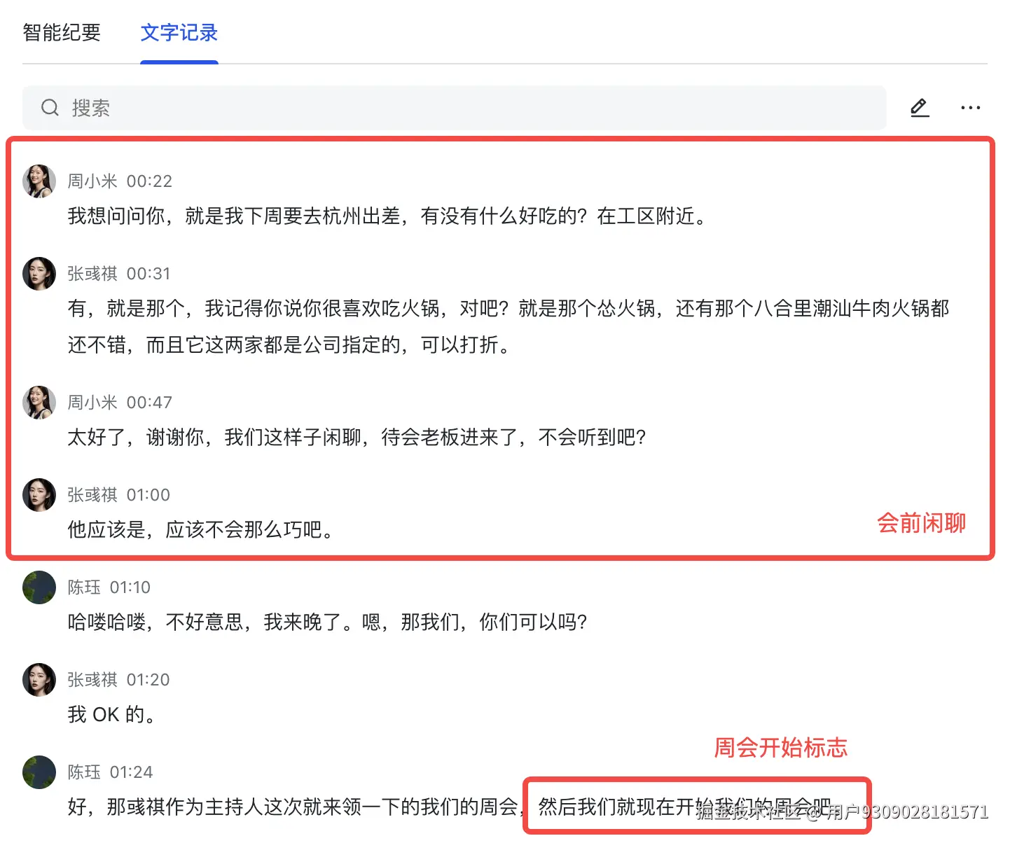 开会前闲聊呢?不会记录到会议中。哈哈哈,这个很贴心对不对。