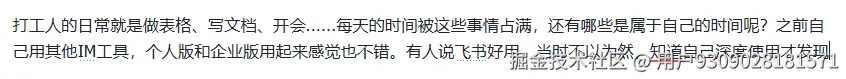 之前自己用其他IM工具,个人版和企业版用起来感觉也不错。有人说飞书好用,当时不以为然,直到自己深度使用才发现飞书是真的不一样,能够大大提升效率。字节会把各类工具都做好、周边障碍都扫除,让打工人专注在高效工作中。