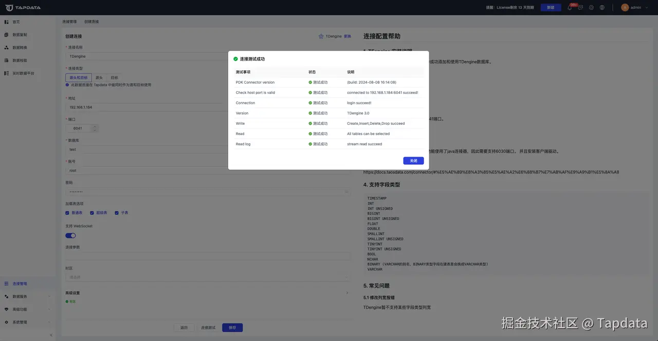 更多详情,参见《TapData 帮助文档-连接数据源-自建数据库 TDengine》: