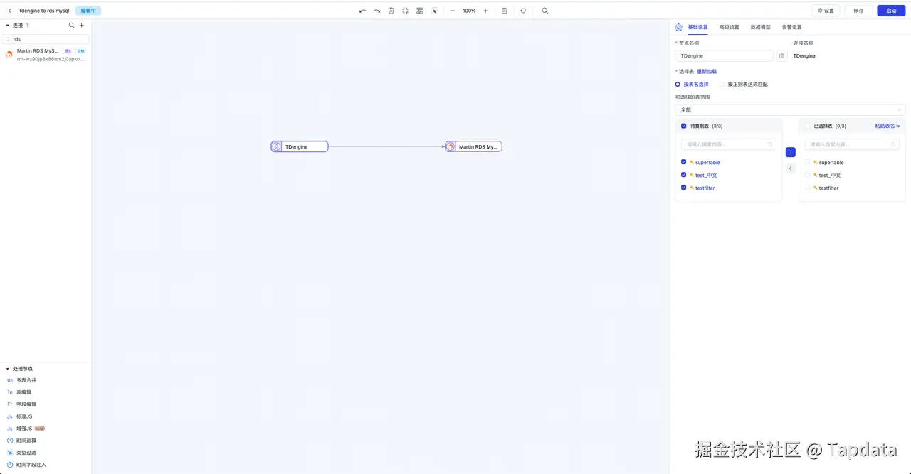 二、TapData 高效同步教程:以 TDengine → RDS MySQL 为例