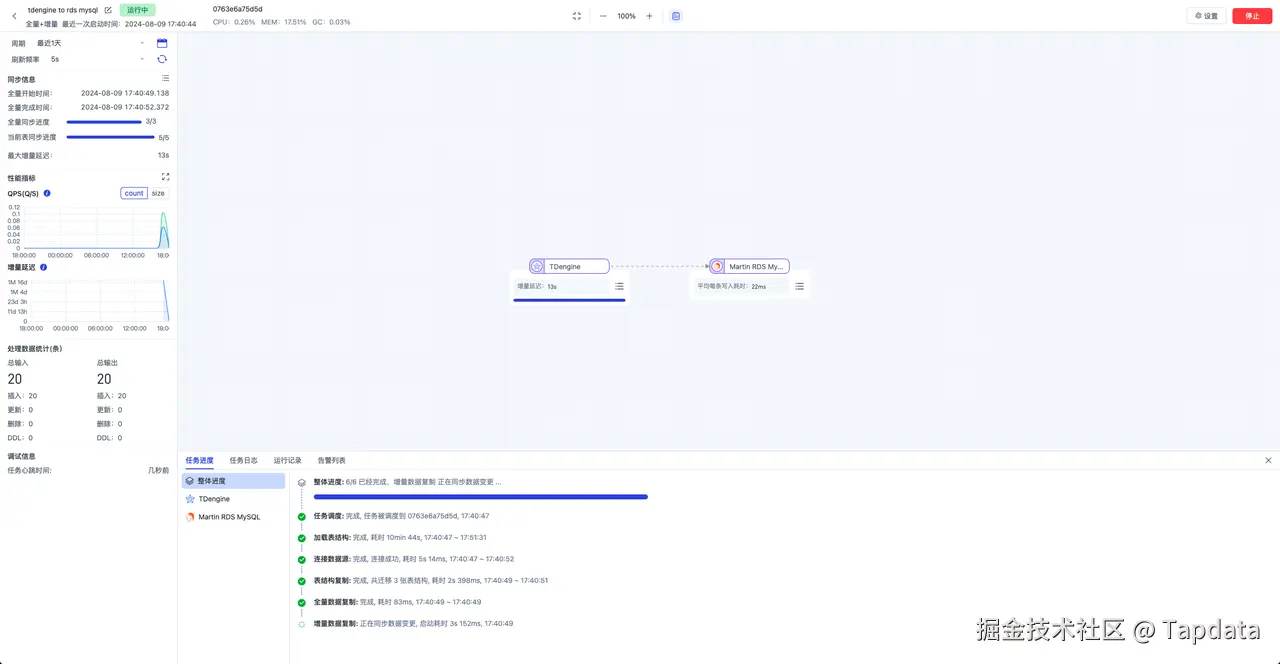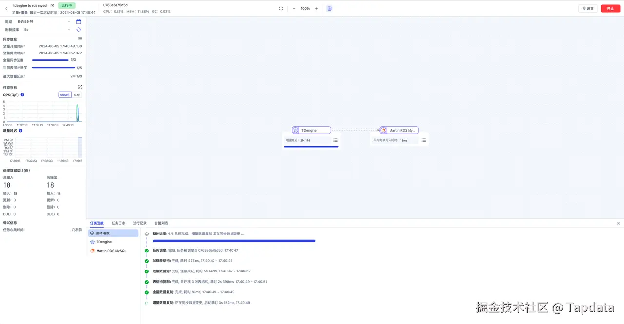 以上,便是借助 TapData 快速实现 TDengine 到 RDS MySQL 的全、增量同步的模拟教程。