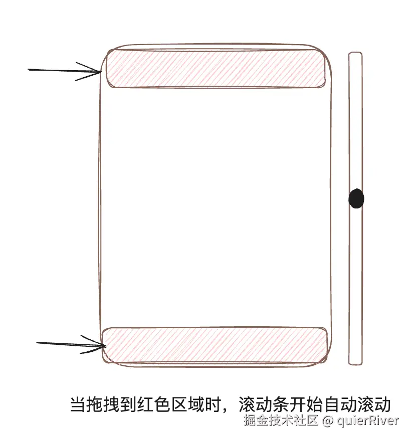 在列表中进行拖拽时,直接使用原生API拖拽的话,同时直接触发滚动条移动到自己想要的位置是一个操作难度挺高的事情。也就是说如果想把第一个元素拖到最后一个,用户最保险的操作是需要先把它移动到当前可视区域的底部,然后向下滚动滚动条,继续循环上面的步骤。这种交互在真实世界里是无法接受的,所以很多拖拽库提供了当用户进行拖拽时滚动条自动滚动的能力。当拖拽位置即将到达底部或者顶部时,会通过js代码改变滚动条的位置,拖拽位置越靠近底部滚动条改变的速度越快。