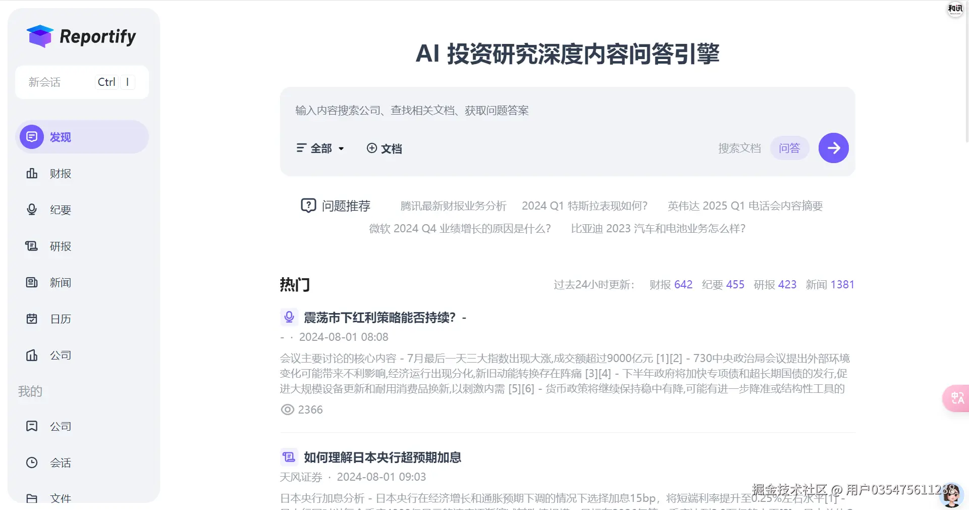 在这个信息爆炸的时代,如何从海量数据中提取有价值的信息成为了金融分析师和投资者面临的挑战之一。Reportify,作为一款专注于金融领域的AI搜索工具,旨在帮助用户高效地获取并理解关键的市场信息。