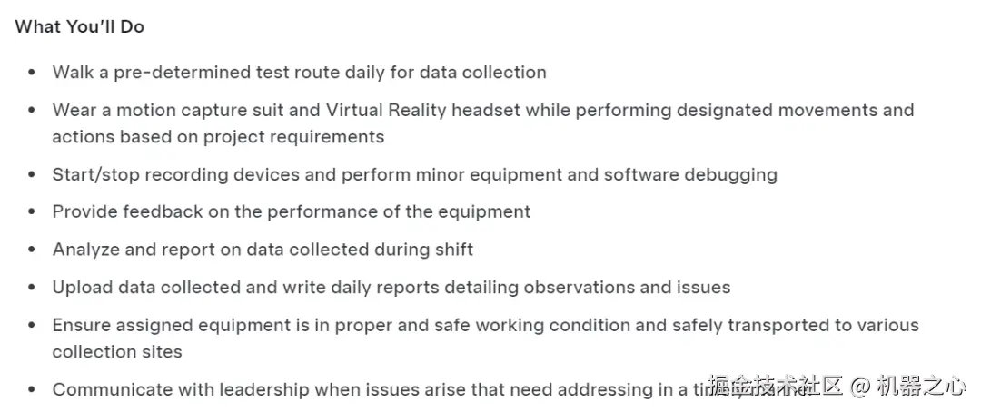 特斯拉在其招聘网站上将此类人员定义为「数据采集操作员」,主要目标是采集数据、协助处理工程请求以及报告设备反馈。据了解,该职位的时薪最高可达 48 美元,还有现金、股票奖励和其他福利。