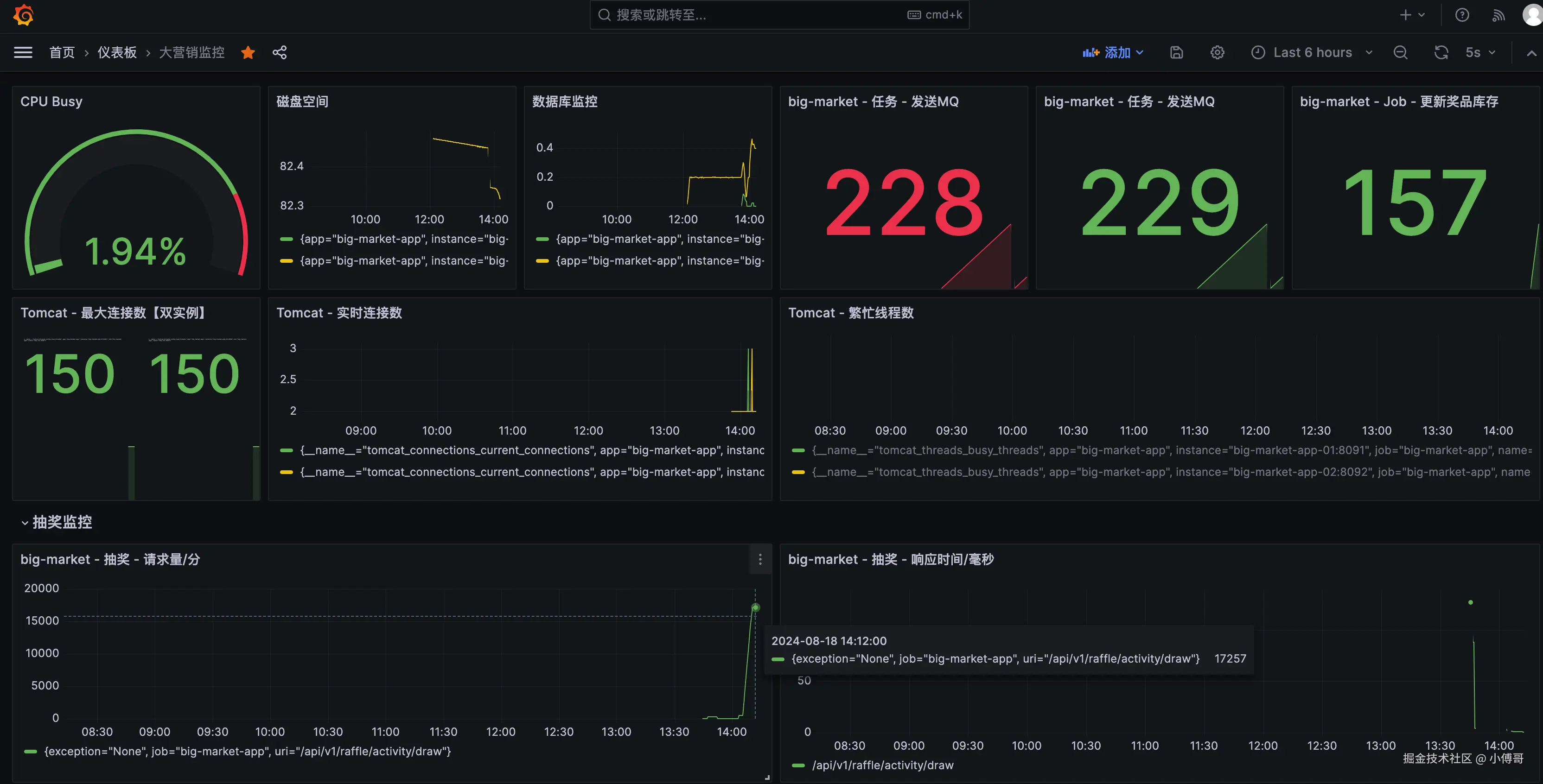 - 【运维】熟练使用 Grafana 监控系统,对系统的 JVM、磁盘、Tomcat、应用(QPS、响应时间、调用量)完整监控。