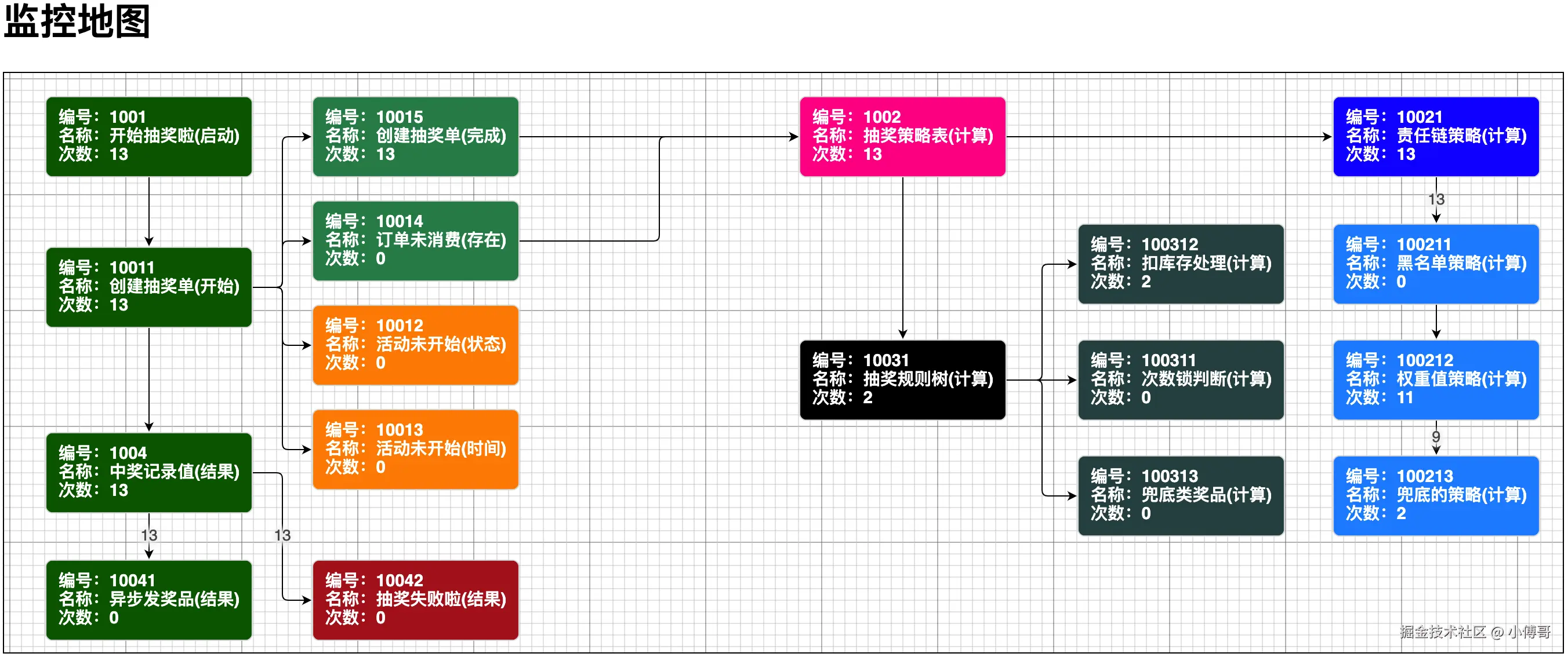 - 业务监控,主要以用户行为发生链路为监控。通过这样的监控知道系统运行的状况,各个业务流程节点的数据是否挤压。