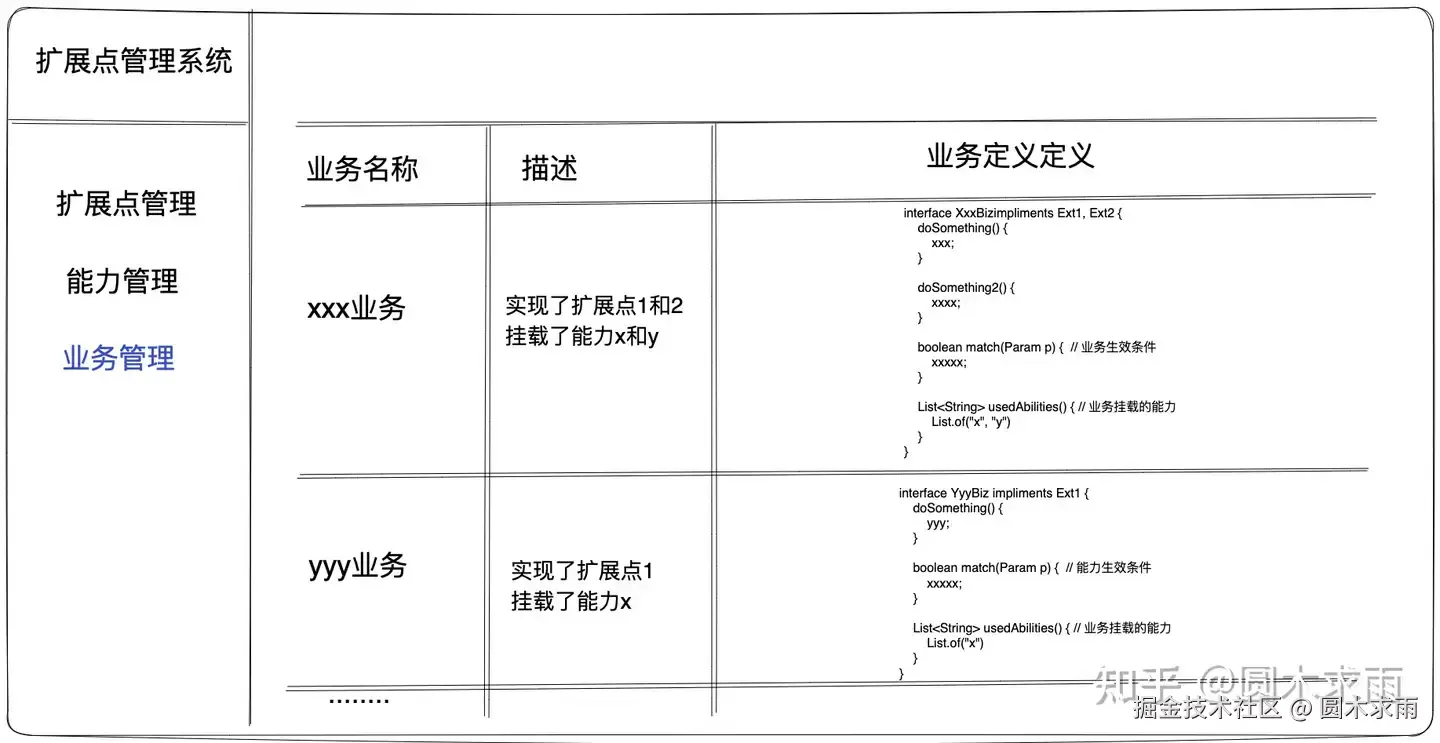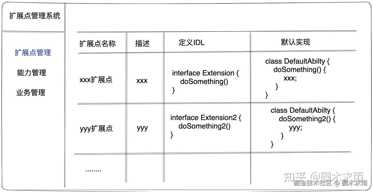 系统哪些功能需要定义成扩展点呢,抽象的原则是什么呢 ?一般来讲扩展点和业务息息相关,扩展点可以随着业务发展不断的沉淀出 (当多个业务都有扩展诉求时,就可以抽象出扩展点)。扩展点也可以由产品经理提前作为功能点进行提前规划。